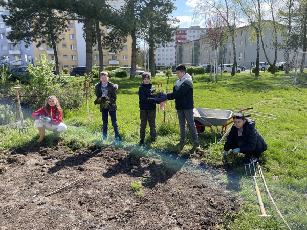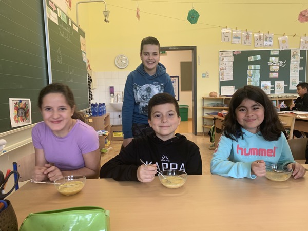 Eine große Stärke der Schule ist der große Schulgarten. Es entstanden ein Naschgarten, Gemüse- und Kräuterbeete, vor ca drei Jahren legten wir einen Schulacker an. Nun wird mit den Kndern gesät, gepflanzt, geerntet, gekocht und verarbeitet.