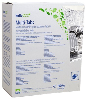 All-in-One Produkt. Vereint Reiniger, Klarspüler, Salz, Glasschutz, Edelstahlglanzschutz, Silberschutz sowie Reinigungsverstärker in einem Tab. Einfache Handhabung und Dosierung. Chlor- und phosphatfrei. Wasserlösliche Folie löst sich zu 100% rückstandsfrei auf.