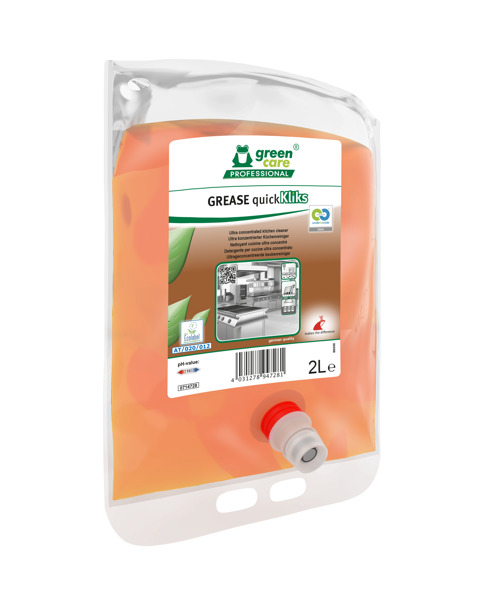 GREASE quickKliks entfernt alle Arten von hartnäckigem Schmutz und sorgt so für einheitliche Ergebnisse und universelle Nutzung. Das Produkt ist dank seiner ultrakonzentrierten Rezeptur und des besonderen Dosierkonzepts einfach im Handling, sicher, kosten- und platzsparend. GREASE quickKliks ist materialschonend und trägt damit auch zu einer längeren Lebensdauer der Oberflächen bei. Der angenehme Orangenduft sorgt ebenfalls für höchste Anwender Zufriedenheit.