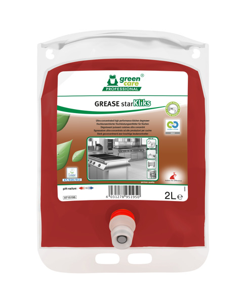 Dank seiner speziellen Tensidkombination ist GREASE off Quick & Easy ein Hochleistungsküchenreiniger, der außergewöhnliche Entfettungseigenschaften besitzt und damit auch hartnäckige Verschmutzung in lebensmittelverarbeitenden Bereichen beseitigt. Als Teil des mobilen Quick & Easy Dosiersystems steht GREASE off Quick & Easy für herausragende Leistung bei effizientem Arbeitseinsatz und geringe Kosten. CLP-frei in der Anwendung bietet das Produkt maximale Anwendersicherheit. Entwickelt mit Wirkstoffen aus regenerativen Quellen trägt dieser Kücheneiniger zum verantwortungsvollen Handeln gegenüber künftigen Generationen bei. Mit seiner EU Ecolabel und Cradle to Cradle® - Zertifizierung antwortet dieser Reiniger auf die wachsenden Anforderungen zur Bewahrung der Umwelt.