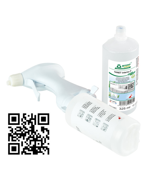 Als Teil des tragbaren Dosiersystems Quick & Easy kombiniert das hochkonzentrierte TANET-interior F Quick & Easy, das frei von Parfüm und Farbstoffen ist, herausragende Leistung mit minimalem Aufwand und niedrigen Betriebskosten. Die CLP-kennzeichnungsfreie Anwendung, bietet maximale Benutzersicherheit. Dank seiner einzigartigen Tensidbasis trocknet dieser Oberflächenreiniger schnell und hinterlässt keine Streifen und Schlieren. Dieses Produkt überzeugt durch hervorragende Reinigungsergebnisse und kann vielseitig verwendet werden, z.B. zur Fensterreinigung. Der schäumende Universalreiniger ist sehr materialfreundlich. Dieser Unterhaltsreiniger, der hauptsächlich aus nachwachsenden Rohstoffen besteht, übernimmt die Verantwortung für zukünftige Generationen.