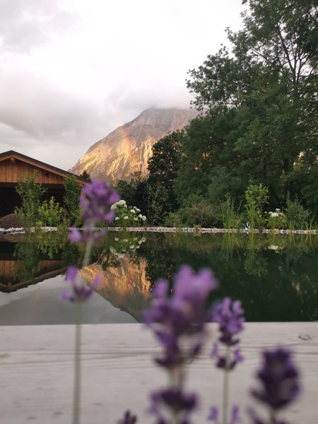 Unseren Gästen stehen eine Garage, ein Ski- und Fahrradabstellraum, eine großzügige Gartenanlage mit einem Naturschwimmteich und Liegeflächen zur Verfügung, von dem aus man sich von dem malerischen Grimming bezaubern und seine Seele baumeln lässt – einfach herrlich!