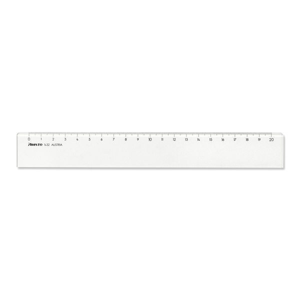 Das Lineal 1432 mit einer Millimeter- Teilung von 200 mm verfügt über eine Facette zur genauen Strichführung. Die ARISTO Lineale werden aus glasklarem Plexiglas® in Österreich gefertigt. Dieses maßbeständige Material und die abriebfeste Tiefprägung garantieren die einzigartige Spitzenqualität. Teilung und Beschriftung entsprechen der Ö-Norm.