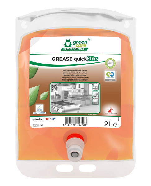GREASE quickKliks entfernt alle Arten von hartnäckigem Schmutz und sorgt so für einheitliche Ergebnisse und universelle Nutzung. Das Produkt ist dank seiner ultrakonzentrierten Rezeptur und des besonderen Dosierkonzepts einfach im Handling, sicher, kosten- und platzsparend. GREASE quickKliks ist materialschonend und trägt damit auch zu einer längeren Lebensdauer der Oberflächen bei. Der angenehme Orangenduft sorgt ebenfalls für höchste Anwender Zufriedenheit.