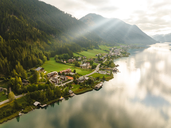Unsere mit 4 Edelweiß ausgezeichnete Frühstückspension liegt direkt am Weissensee, dem mit 950m über dem Meeresspiegel höchstgelegenen Badesee der Alpen und einem wahren Naturjuwel. Abseits der Straße, umgeben von Wald und Wiesen und nur wenige Schritte vom See entfernt, lässt es sich gut urlauben – sowohl für Ruhe- als auch für Action-Suchende.