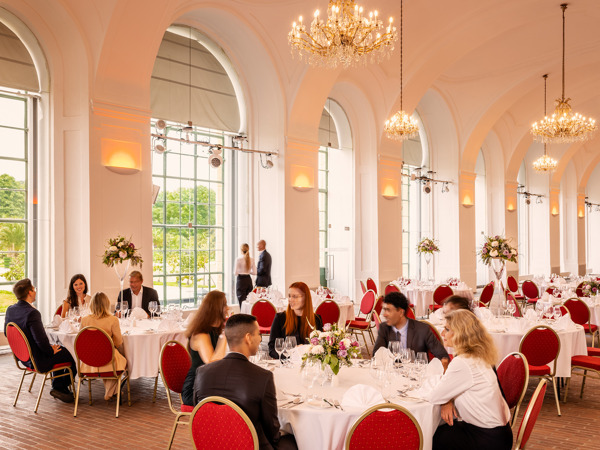 In dieser Tradition stehend, bietet die Orangerie einen imposanten Rahmen für Ihre Veranstaltungen. Beeindrucken Sie Ihre Gäste mit der direkten Verbindung zwischen dem Orangeriegarten und dem Festsaal. Für großformatige Veranstaltungen bietet sich die Kombination von der Orangerie und den direkt angrenzenden Räumlichkeiten im Apothekertrakt an.