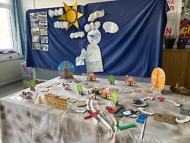 Plastian, der kleine Fisch führt uns durch unseren Stationenbetrieb, der an diesem Tag den Kindern angeboten wird. Gemeinsam wird bei einer Station eine Leinwand mit Plastian aus Kunststoffresten,welche wir in den nächsten Wochen sammeln entstehen. Die Kinder bekommen einen Klimapass, mit dem sie mit Begleitung und Anleitung von Station zu Station ziehen können. Bsp: Bilderbuchkino: Plastian, der kleine Fisch und wie er mit seinen Freunden auf einer abenteuerlichen Reise die Welt ein bisschen besser macht. Abfalltrennen mit der Müllhexe Rosalie Als MIttagessen gibt es aus der frische Küche einen Kliamteller