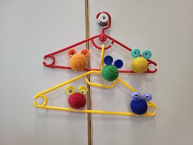 Wir werden zum Umweltzeichen-Tag Kunstwerke aus alten Kleiderbügeln und Flaschenverschlüssen basteln.