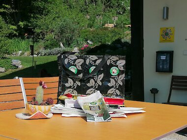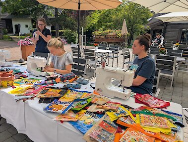 Im Theresienhof hat ein großes Umdenken stattgefunden, weshalb wir den Müll von Plastikverpackungen bereits um einiges minimiert haben. Wir sind zwar noch lange nicht da, wo wir hinwollen, genießen aber den Weg und den Prozess. Kaffee wird bei uns noch in Plastiktüten gekauft. Um diese wiederzuverwenden, starten wir heuer mit dem Workshop "get baggy". Kaffeetüten, alte kaputte Fahrradschläuche und weiter Plastikmaterialien werden zu Upcyclen Bags verarbeitet. Verschiedene Designs, Farben und Stiele treffen aufeinander und unterstreichen unser Mindset. Außerdem nehmen unsere Gäste somit ein Andenken und ein Stückchen nachhaltigen Urlaub mit Herz mit nachhause. Leaning by doing mit den eigenen Händen ist der beste Weg, etwas zu begreifen.