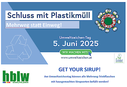 Am 5. Juni setzen wir ein Zeichen für die Umwelt! ♻️💚 Nachhaltigkeit geht uns alle an – deshalb sind wir als Träger des Österreichischen Umweltzeichens stolz darauf, am Umweltzeichen-Tag 2025 unter dem Motto „Schluss mit Plastikmüll – recyclen statt wegwerfen“ mitzuwirken. An diesem Tag engagieren wir uns gemeinsam mit unseren Schülerinnen und Schülern für eine Zukunft mit weniger Müll und mehr Recycling. Als Gesund-Aktiv Mittelschule möchten wir zeigen, dass jeder Beitrag zählt. Daher wollen wir Bewusstsein schaffen, wie sehr Plastik in unserem täglichen Leben dominiert und an diesem besonderen Tag bewusst auf Plastik verzichten, um Bewusstsein für den verantwortungsvollen Umgang mit Ressourcen zu schaffen.