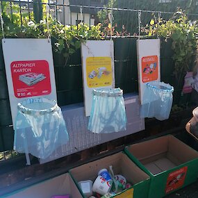 Wir setzen uns aktiv für Müllvermeidung und Recycling ein – und motivieren auch unsere Kund*innen dazu, umweltbewusst zu handeln. In unseren Räumen stellen wir ein durchdachtes Trennsystem zur Verfügung, das eine einfache und effektive Mülltrennung ermöglicht. Um das Bewusstsein für den Verbrauch von Plastik weiter zu schärfen, dokumentieren wir auf einem gut sichtbaren Flipchart täglich die anfallende Menge an Plastikmüll. So machen wir sichtbar, wo wir stehen, und setzen gezielt Impulse für Veränderung. Regelmäßig informieren wir über die Vorteile von Mehrwegverpackungen und machen auf das neue Pfandsystem aufmerksam. Pfandflaschen und -dosen, die von Kund*innen zurückgelassen werden, sammeln wir und lösen sie ein. Mit dem Erlös kaufen wir regionale Früchte für unser Kund*innen.