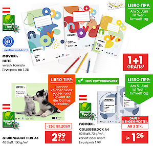 - 1+1 gratis auf novooo Hefte verschiedene Formate und Lineaturen Einzelpreis ab 1,25€