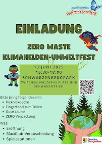 Im Mai und Juni 2025 setzen wir am Standort Dornbach ein starkes Zeichen für Nachhaltigkeit: Mit Waldtagen mit viel Wissen über das Schützen des Waldes, kreativen Aktionen zur Mülltrennung, dem Sammeln von Klimameilen für einen klimafreundlichen Kindergartenweg und unserer großen Umwelt-Challenge (große Sammlung mit 50 Herausforderungen für eine besser Welt / Umwelt) sind alle Kinder und Mitarbeiter*innen mit vollem Einsatz dabei. Der krönende Abschluss: Unser Sommerfest „Zero Waste – Klimahelden-Umweltfest“ am 13. Juni, gemeinsam mit Creative Storytellers und in Kooperation mit Baobab. Gemeinsam machen wir die Welt ein Stück grüner!