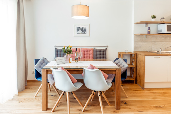 • If you do not want to prepare your own breakfast, you are also welcome to book our breakfast service. Then we serve the entire breakfast freshly prepared to you into the apartment. If you prefer to have a vegan breackfast, we are happy to serve your breackfst vegan