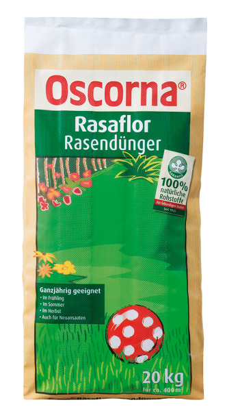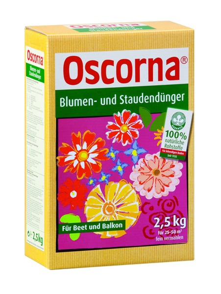 Ausgewählte Oscorna-Produkte: Animalin-Gartendünger, Rasaflor-Rasendünger, Blumendünger granuliert, Beerendünger, Baum-, Strauch-, Heckendünger, Rinderdung, Rhododendrendünger, Hornmehl und -späne