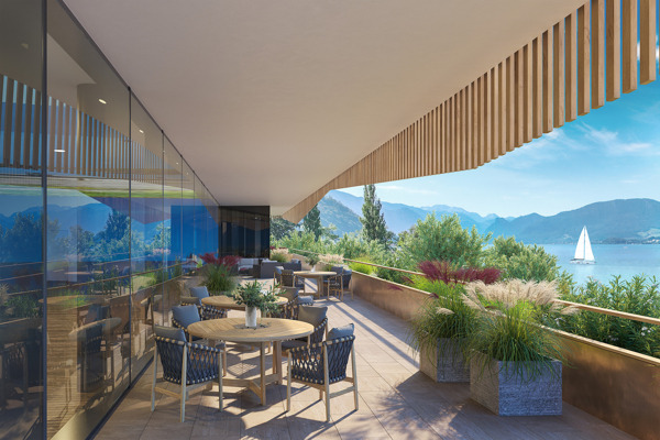 Direkt am Ufer des Traunsees entwickelt SORAVIA ein vielseitiges Seeviertel, das als hochwertiger Lebensraum Nahversorgung, Wohnungen, Arbeitsplätze und Tourismusflächen bietet und dabei der außergewöhnlichen Lage und Landschaft gerecht wird. Das touristische Highlight bildet das neue 4*-Plus-Hotel, das sich zwischen See und neuer Magistrale in den öffentlichen Raum einfügt und zum See hin eine natürliche Uferlinie vorsieht. Zusätzlich bietet das Hotel allgemein nutzbare Infrastruktur mit Gastronomie, Seminarräumlichkeiten, Fitness und Spa. Die Seepromenade bleibt weiterhin der breiten Öffentlichkeit zugänglich und wird durch die neu geschaffenen Begegnungszonen aufgewertet.